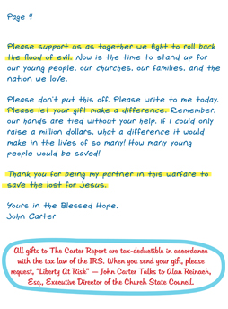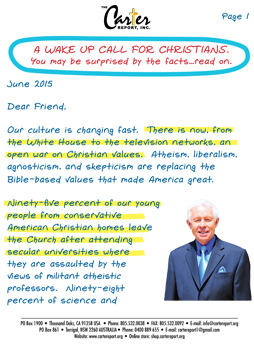 All gifts to The Carter Report are tax-deductible in accordance with the tax law of the IRS. When you send your gift, please request, “Liberty At Risk” — John Carter Talks to Alan Reinach, Esq., Executive Director of the Church State Council.