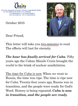 I am asking you to be my faith partner in raising one million dollars for the proclamation of Christ to the Cuban people. All can do something. Jesus will provide. May God bless you over and beyond all you can ask or think. Please write today.