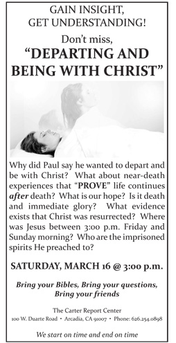Why did Paul say he wanted to depart and be with Christ? What about near-death experiences that “PROVE” life continues after death? What is our hope? Is it death and immediate glory? What evidence exists that Christ was resurrected? Where was Jesus between 3:00 p.m. Friday and Sunday morning? Who are the imprisoned spirits He preached to?
