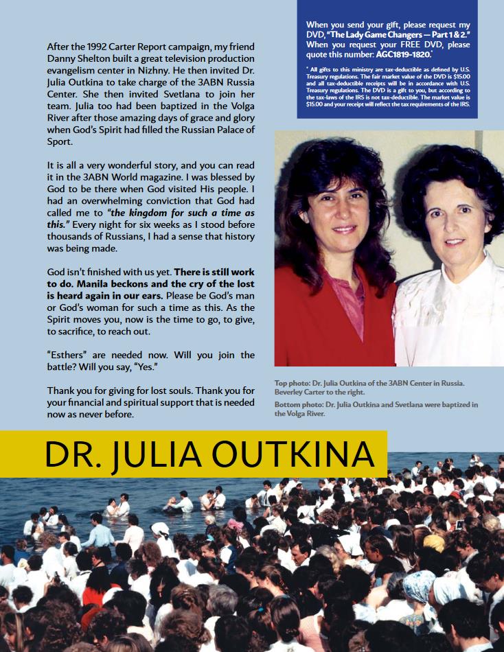 After the 1992 Carter Report campaign, my friend Danny Shelton built a great television production evangelism center in Nizhny. He then invited Dr. Julia Outkina to take charge of the 3ABN Russia Center. She then invited Svetlana to join her team. Julia too had been baptized in the Volga River after those amazing days of grace and glory when God’s Spirit had filled the Russian Palace of Sport.