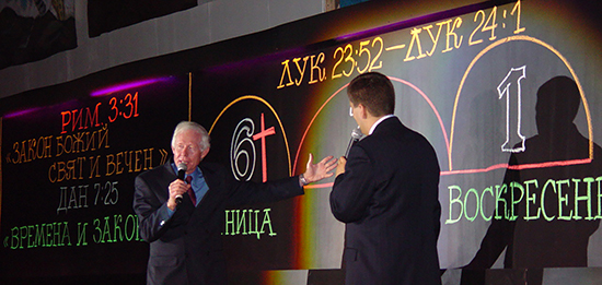Danny Shelton of 3ABN joins John Carter for the climax of the 1992 Carter Report campaign — the baptism of 2,530 souls. Soon after this historic event, Mr. Shelton undertook the construction of the largest Protestant building in Russia, the 3ABN center in Nizhny Novgorod.
