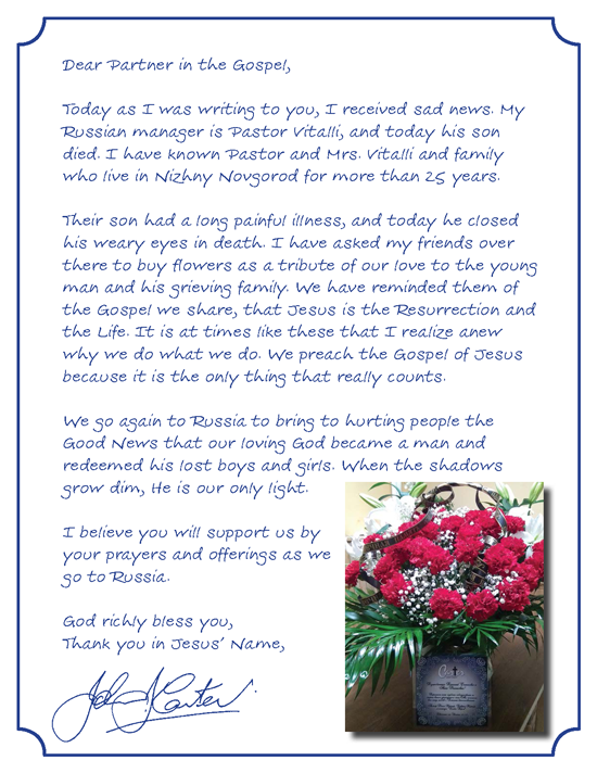 1-3, 12, 13 where unbelievers are described as “without hope and God in the world.”) We are on our way to Russia to fly the Gospel flag.