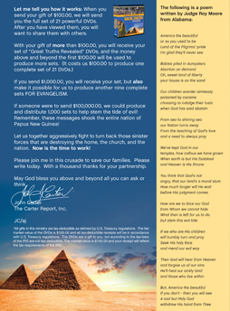 1. When you send $100.00, we will send you the 21 DVDs that make up the “Great Truths Revealed” series. After watching for yourself, you will want to place this powerful series in the home of a relative or friend.