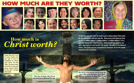 To find the value of a soul, we need to go to Calvary where Christ paid for our redemption with His own life. How much is the blood of Jesus worth? A million dollars? A billion dollars? A trillion dollars? It is a price far beyond our comprehension. Christ would have died for one soul. How much is a soul worth? The answer: The value of the blood of Christ. This means you are tremendously important. So are the people featured in this newsletter.