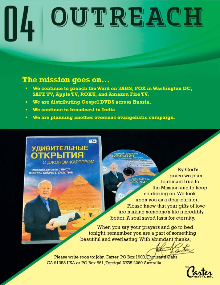 “What is the mission of The Carter Report?” is a question I must answer. Our mission is to save lost souls, proclaim the Gospel in the context of the Three Angels’ Messages, go to dangerous places when God calls, uplift the oppressed, and glorify the name of Jesus.