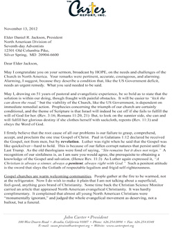 PPS It is our intent in order to strengthen and support your ministry to place this letter on The Carter Report website where it will have a large readership.
