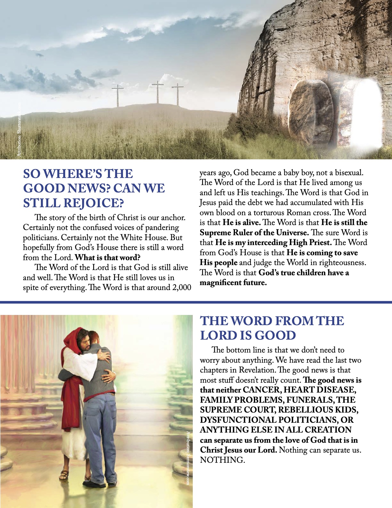 So I plan to sing, rejoice, be happy, and celebrate Jesus. Will you join me? Let the pessimists enjoy their doom and gloom. We are pilgrims traveling home on the good ship called GRACE. For us, the bad news is the good news because we are nearing home.