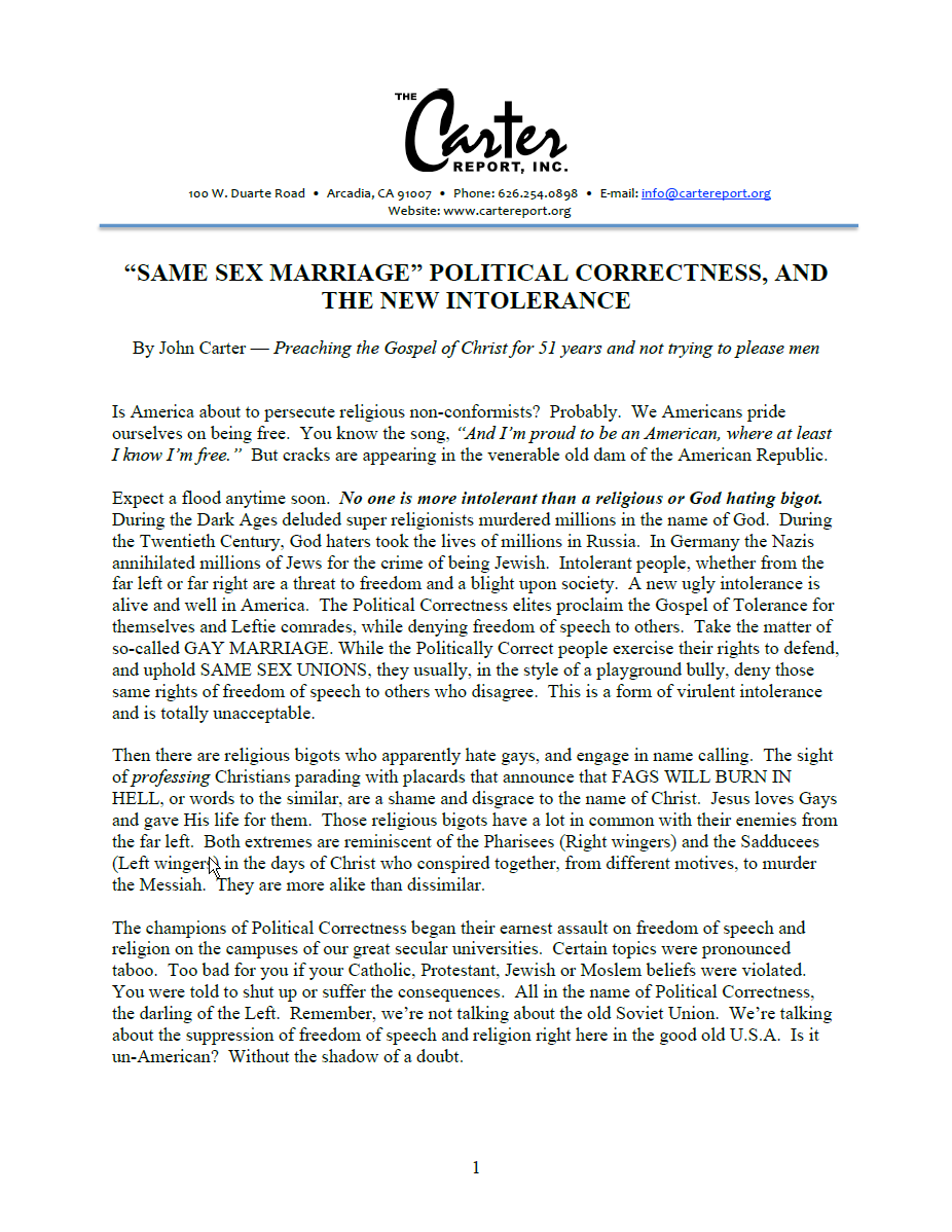“SAME SEX MARRIAGE” POLITICAL CORRECTNESS, AND THE NEW INTOLERANCE