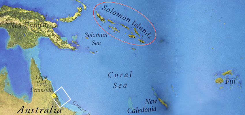 The Solomon Islands lie to the Northeast of Australia, just South of the equator. There are 2 seasons: hot and wet, or dry and wet.