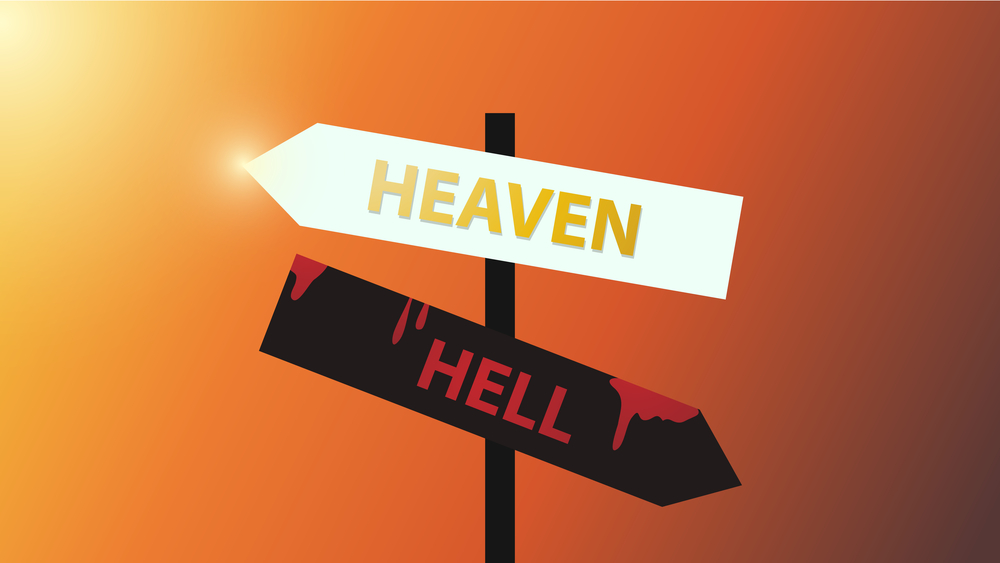 Moving,Escalators,Stairs,,Heaven,Hell,Sign