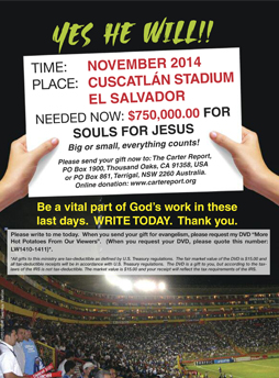Please write to me today. When you send your gift for evangelism, please request my DVD “More Hot Potatoes From Our Viewers”. (When you request your DVD, please quote this number: LW1410-1411)*.